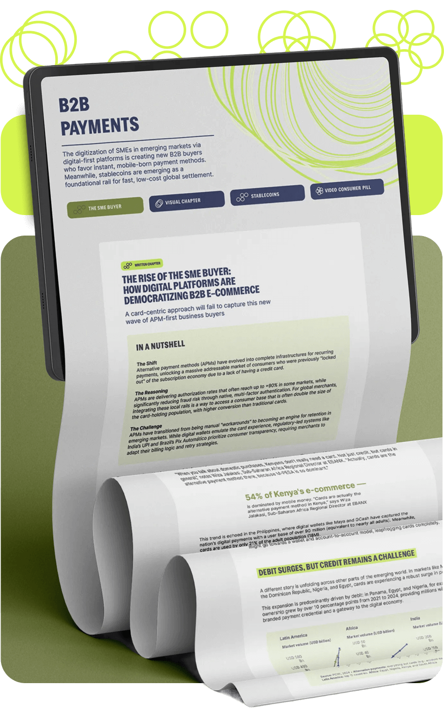The 2026 edition of the Beyond Borders report explores how the diversification of payment rails, the expansion of card payments and digital wallets, the evolution of recurring and installment models, the growing role of A2A transfers, the demographic forces shaping the digital consumer profile, and the emergence of stablecoins and agentic commerce are reshaping market access across Latin America, Africa, and Asia.