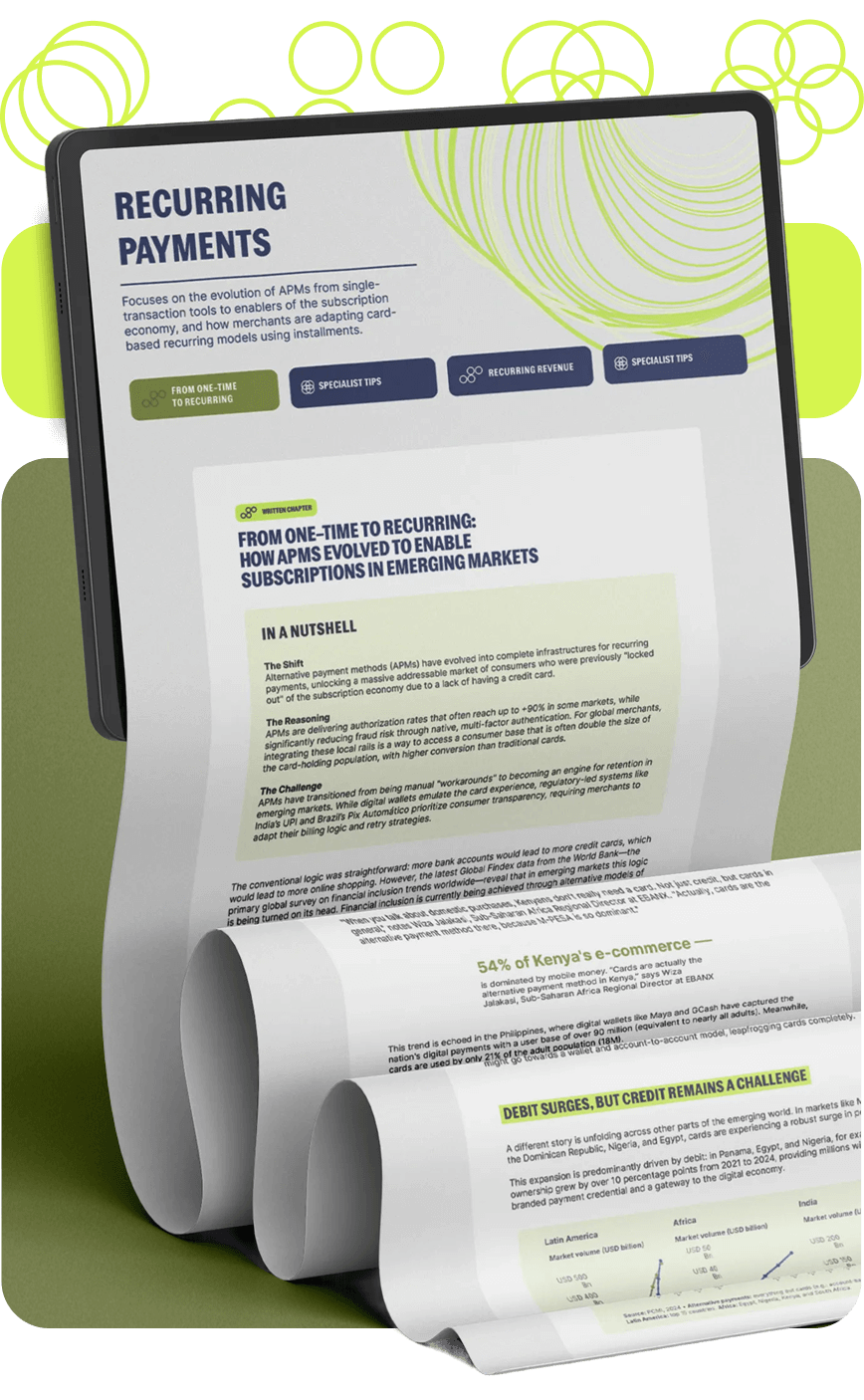 Dive deep into subscription payment trends, authorization rates, and involuntary churn in the Beyond Borders 2026 edition. See how recurring payment methods are evolving beyond cards, driven by APMs, and automated A2A rails like Brazil’s Pix Automático and India’s UPI AutoPay.